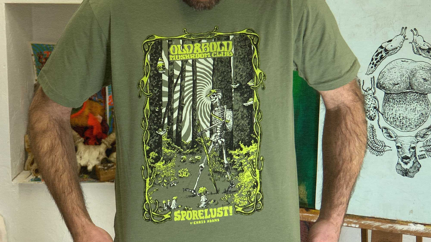 Our apparel is ethically sourced, hand printed, and art forward. All our goods feature artwork that wraps up everything we love about mushrooms, nature, 90s skate-punk vibes and 60s counterculture comics in one little, sometimes a bit deranged, packet.